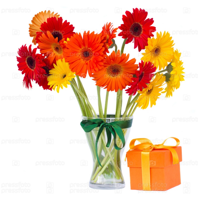 Красные и оранжевые герберы