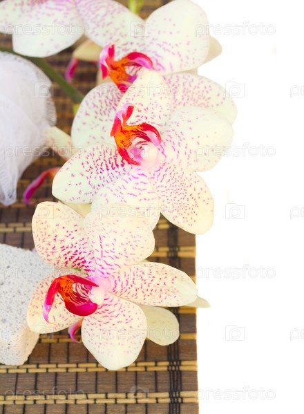 Розовые орхидеи на циновке