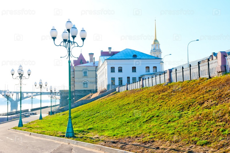 Набережная города Рыбинск ранним утром