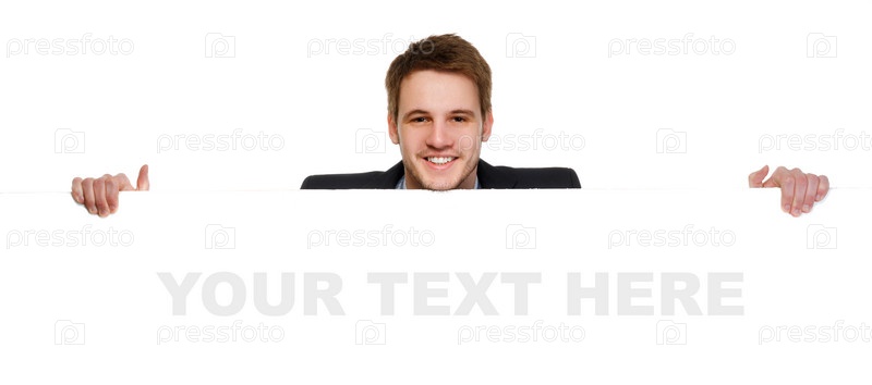Молодой бизнесмен с баннером