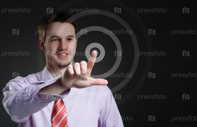 Человек нажимает кнопку на стекле