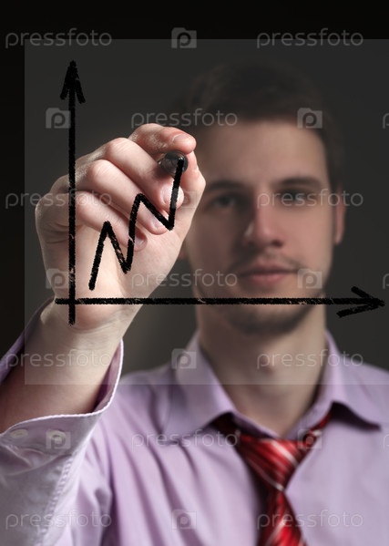 Бизнесмен рисует график на прозрачном экране
