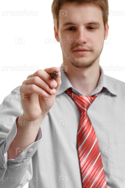 Бизнесмен рисует на стекле