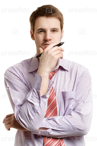 Мужчина в рубашке и галстуке с ручкой