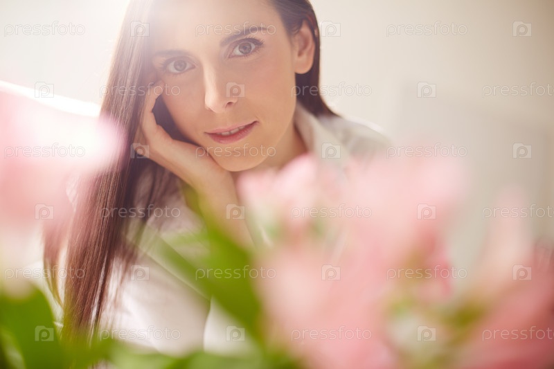 Девушка с букетом цветов