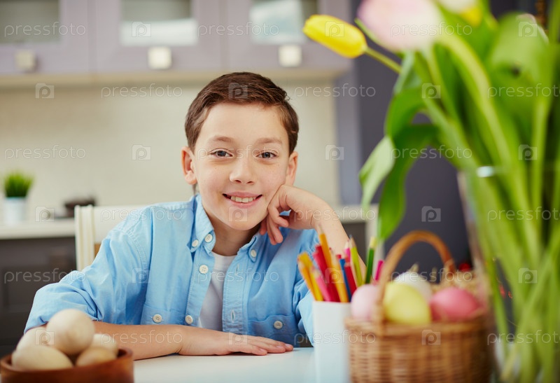 Мальчик с пасхальными яйцами