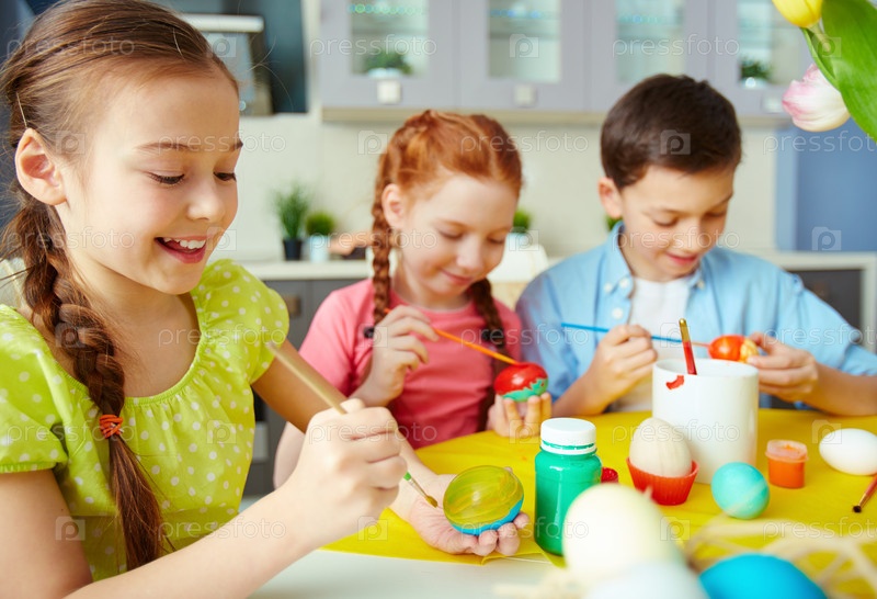 Школьники с пасхальными яйцами