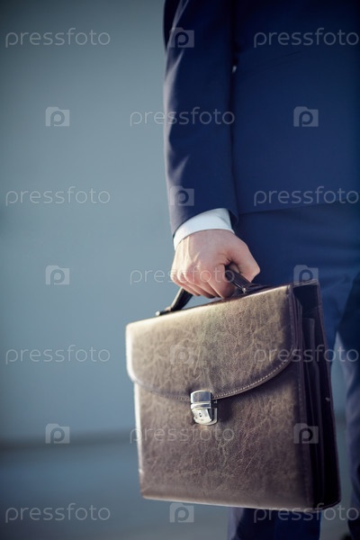 Кожаный портфель в руке