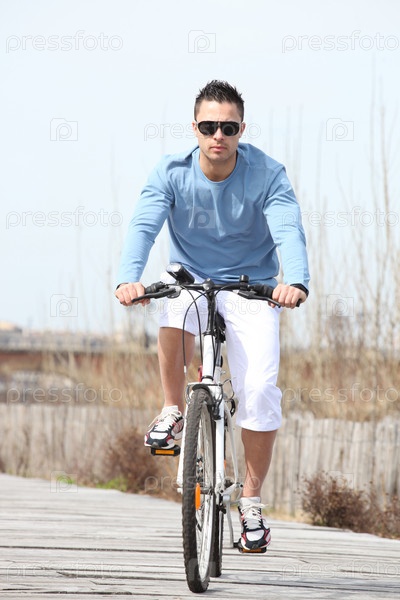 Молодой мужчина на велосипеде