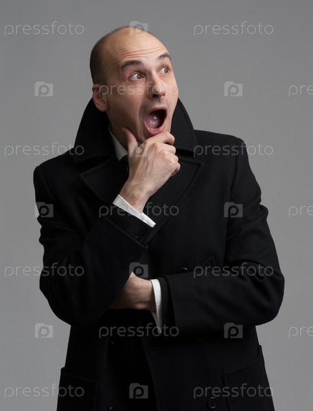 Удивленный мужчина в пальто