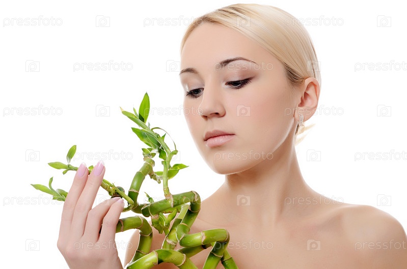 Красивая молодая женщина с зеленым бамбуком