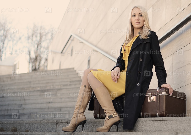 Красивая женщина с чемоданом
