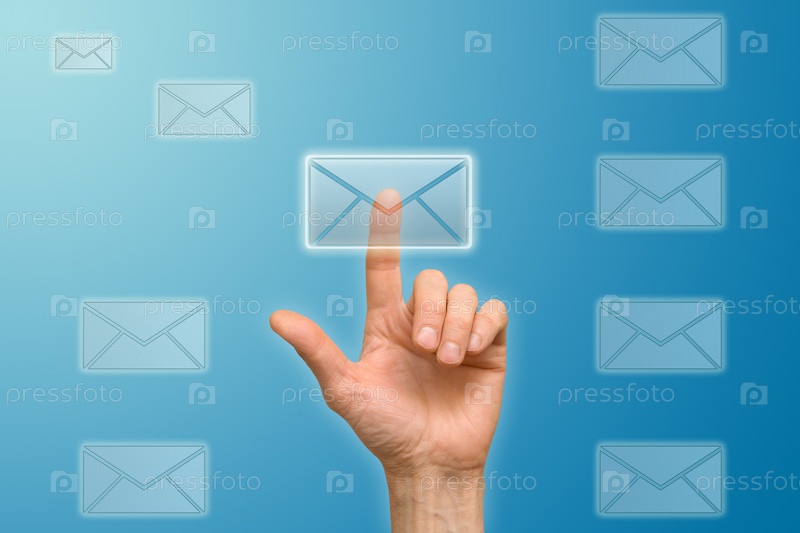 Рука нажимает на сенсорную кнопку в виде конверта