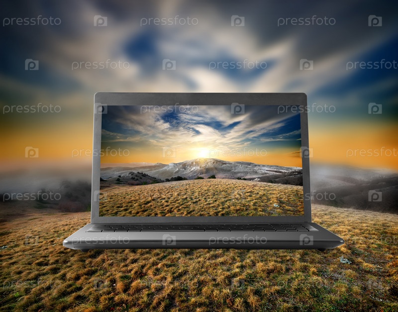 Горы на мониторе ноутбука
