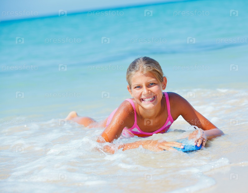 Летние каникулы - девочка с доской для серфинга