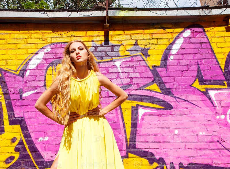 Блондинка возле стены с граффити