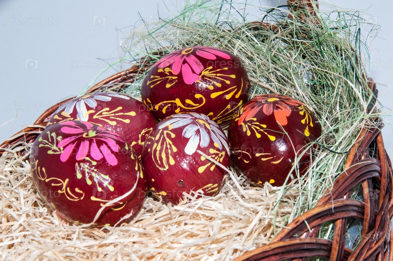 Пасхальные яйца в корзине