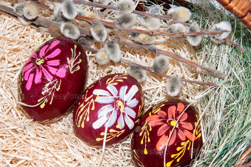 Пасхальные яйца в корзине