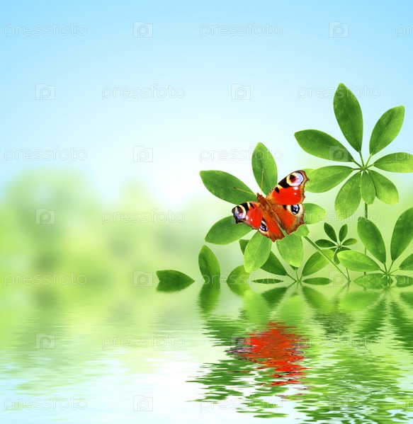 Зеленые листья и бабочка
