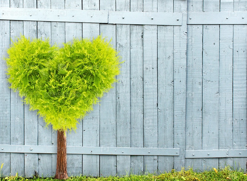 Старый деревянный забор и дерево в форме сердца