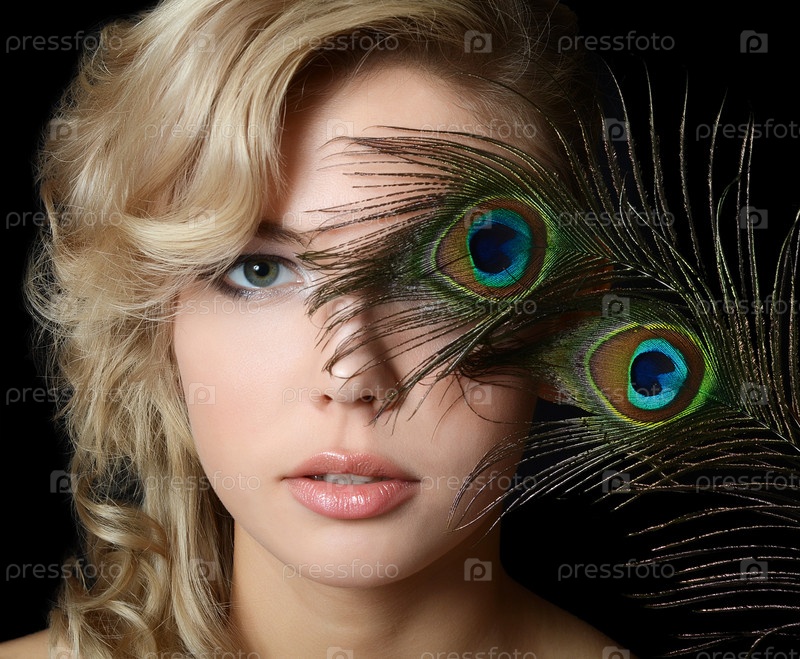 Красивая женщина с перьями павлина