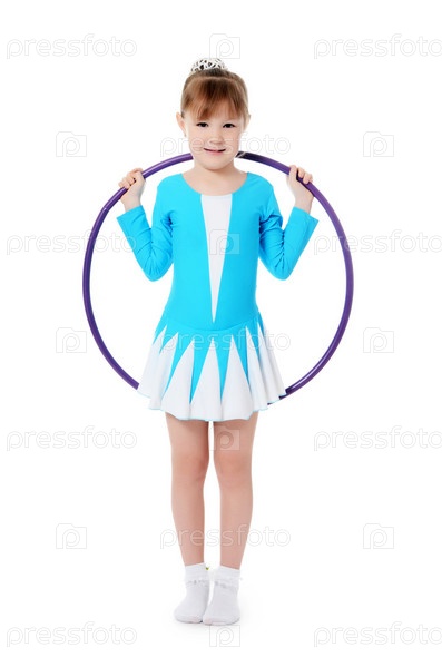 Маленькая гимнастка выполняет упражнение