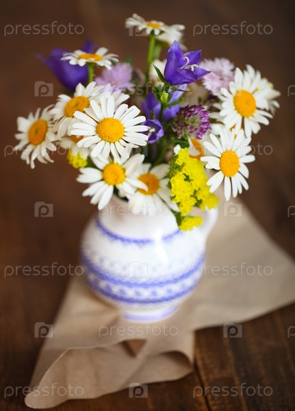 Букет из полевых цветов на деревенском столе