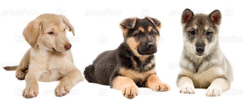 Щенки на белом фоне