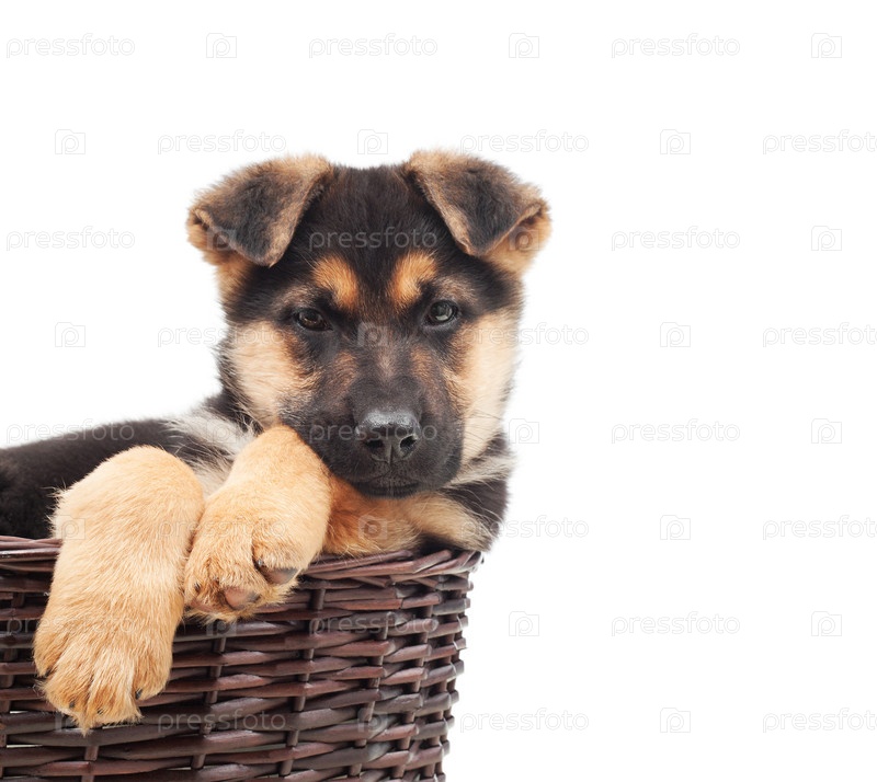 Щенок в плетеной корзине