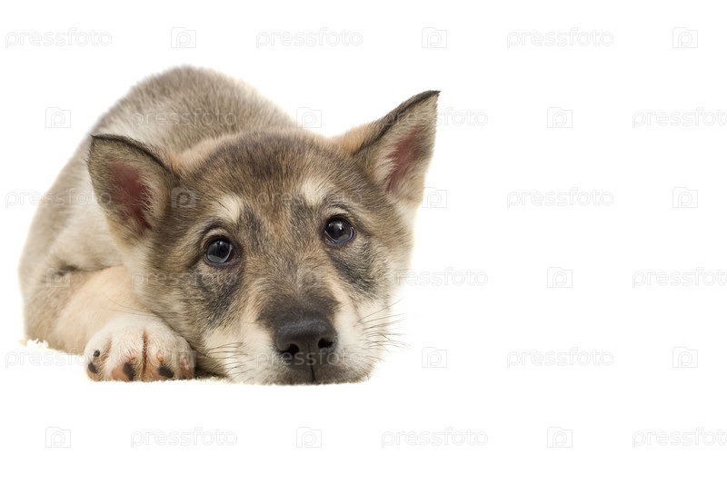 Щенок лежит и смотрит