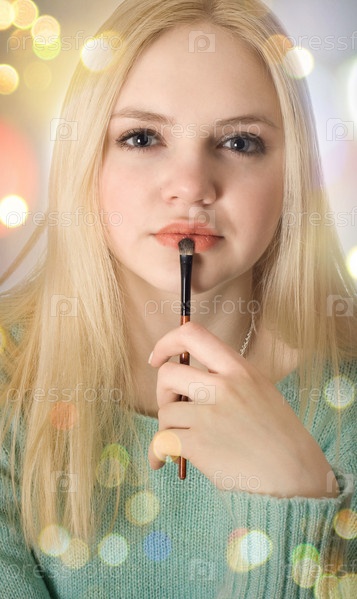 Женщина наносит макияж
