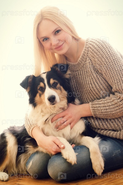 Девушка-подросток и пушистая собака