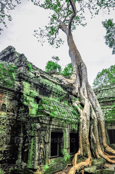 Огромное дерево на храме Та Пром и Ангкор-Ват, Сием Рип, Камбоджа, Азия