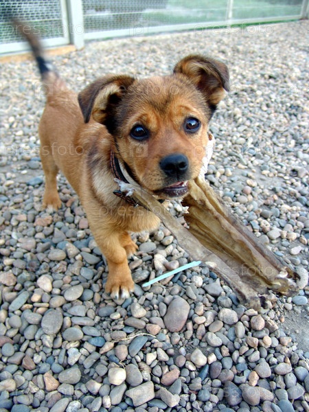 Щенок играет с палкой