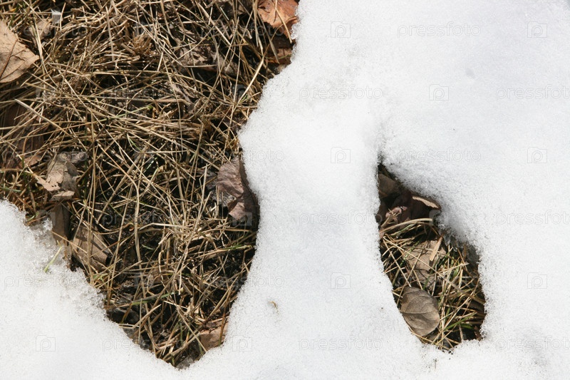 Прошлогодняя трава под талым снегом