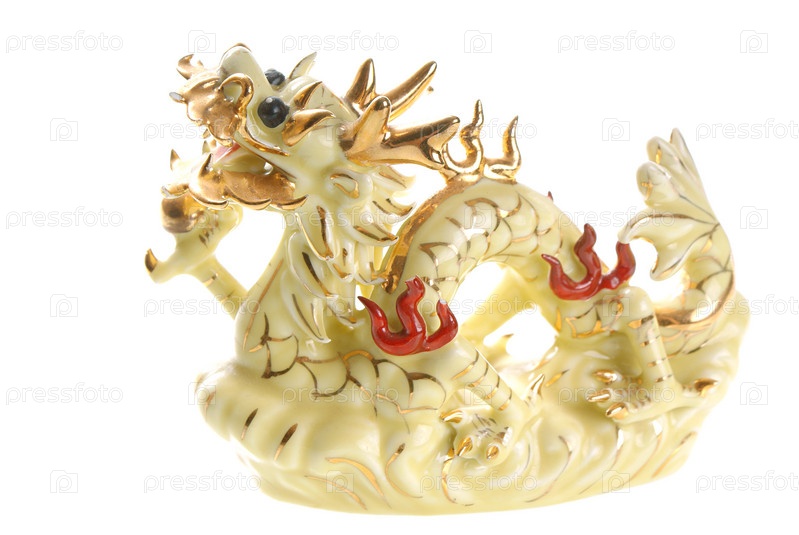 Керамическая фигурка в форме дракона на белом фоне