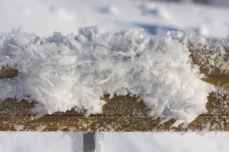 Заснеженные перила. Крупным планом