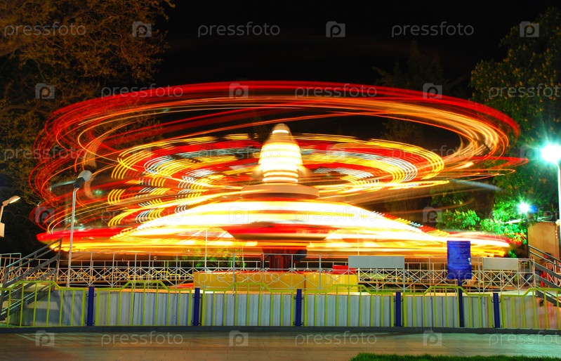 Карусель в движении в ночное время