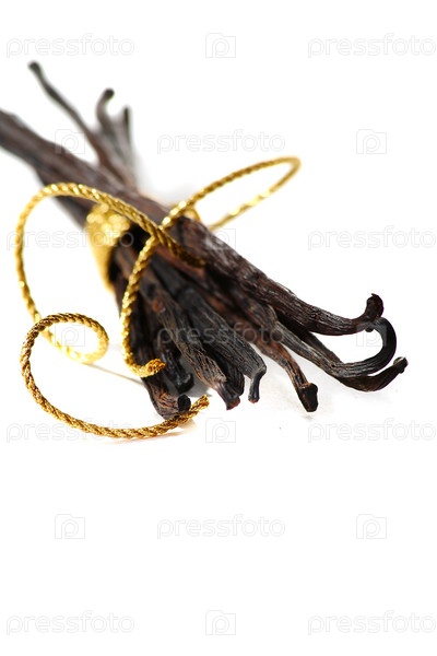 Стручки ванили крупным планом на белом фоне