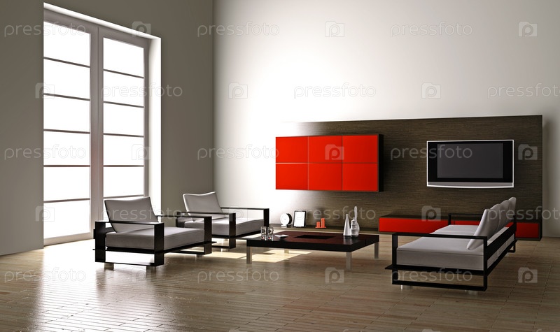 Современный интерьер гостиной, 3D