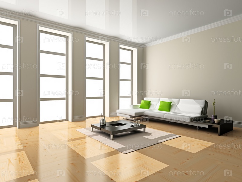 Просторная светлая гостиная, 3D