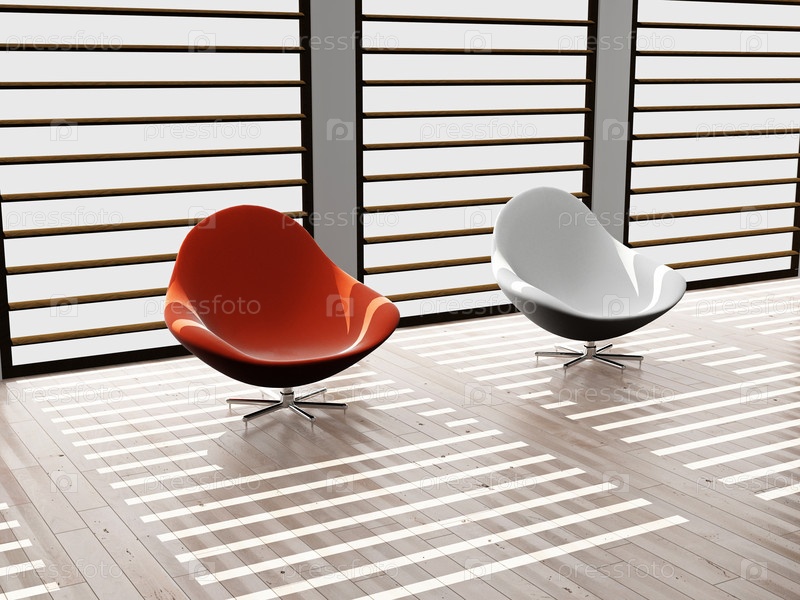 Два современных стула в комнате, 3D