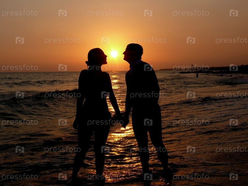 Влюбленная пара на фоне заката