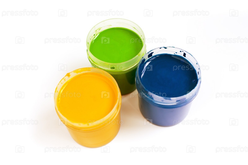 Три баночки с краской на белом фоне