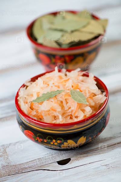 Квашеная капуста в хохломской посуде