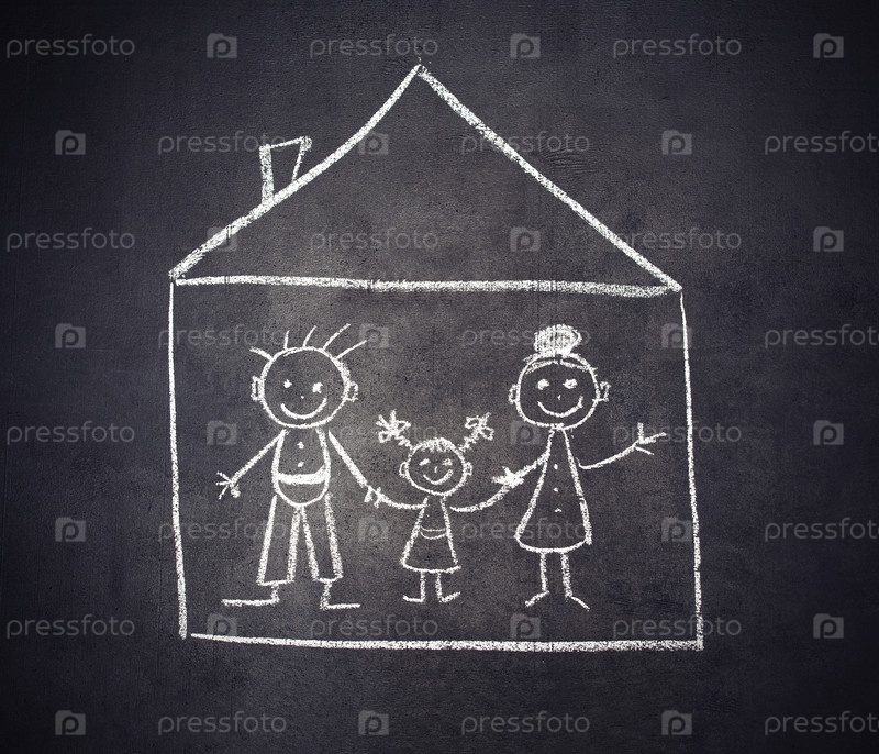 Семья и дом нарисованы мелом на доске