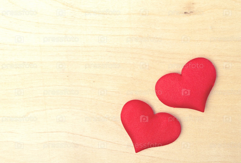Два красных сердца на деревянной доске