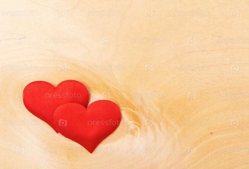 Два красных сердца на деревянной доске