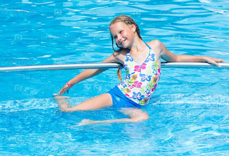 Девочка в открытом бассейне
