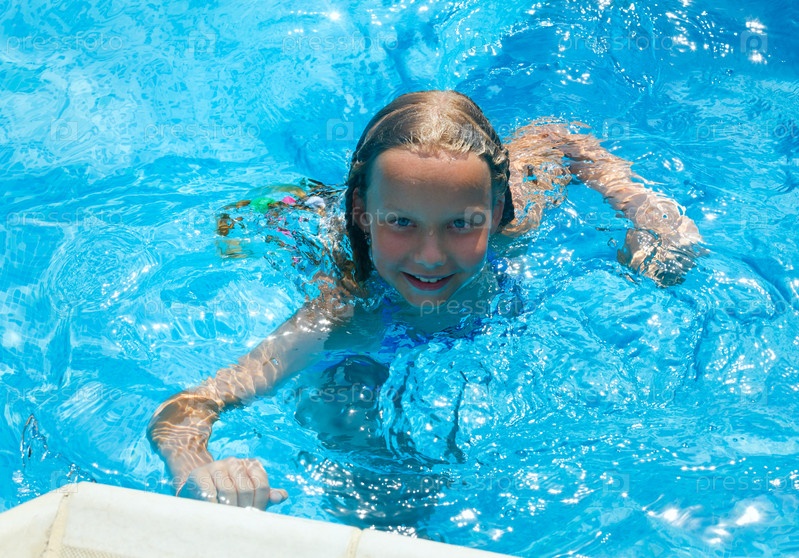 Девочка в открытом бассейне